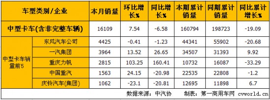● 中型卡車產(chǎn)銷情況: